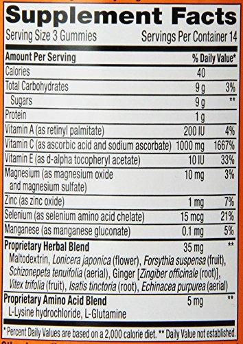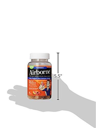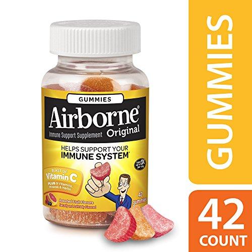 Details: Airborne Immune Support Gummies supplements provide real immune support in a delicious, and easy-to-take gummy form. Each serving (3 gummies) delivers a blast of 1000 mg of Vitamin C plus 9 other immune system supporting vitamins, minerals, and herbs, including Echinacea, ginger, and other herbal extracts from whole plant materials.* Adults and Children 14 years and older, chew 3 gummies thoroughly before swallowing. Repeat as necessary up to 3X per day, no more than 9 gummies per day. *These Statements have not been evaluated by the Food and Drug Administration. This product is not intended to diagnose, treat, cure or prevent any disease.