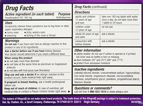 Details: Take control of your allergies with non-drowsy Allegra. 24 hour protection indoor and outdoors. Relief of runny nose, sneezing, itchy, watery eyes, itchy nose or throat. 33% More Bonus Pack - 40 Tablets.