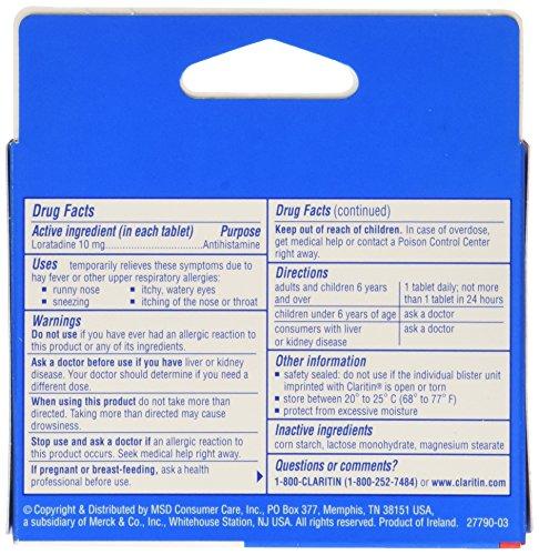 Details: Claritin Allergy 24 hr 10 mg Tablets 5ct is a non-drowsy, allergy relief product. It can temporarily relieve runny nose, sneezing, itchy, watery eyes, and itchy nose or throat caused by indoor or outdoor allergies.