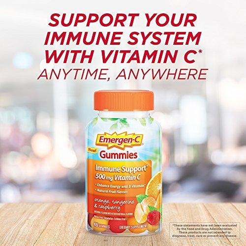 - Emergen-C Gummies naturally support your immune system with 500 mg of Vitamin C per serving and enhance energy naturally with B Vitamins(1).