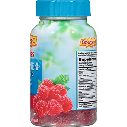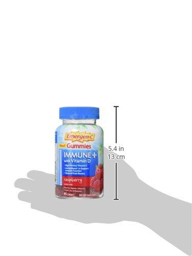 Details: Emergen-C Immune+* in a Yummy Gummy Vitamin! Emerge Fortified with 500 mg of Vitamin C per serving, plus Vitamin D and Zinc to help support your immune system.* Also with natural fruit flavors and sweeteners.