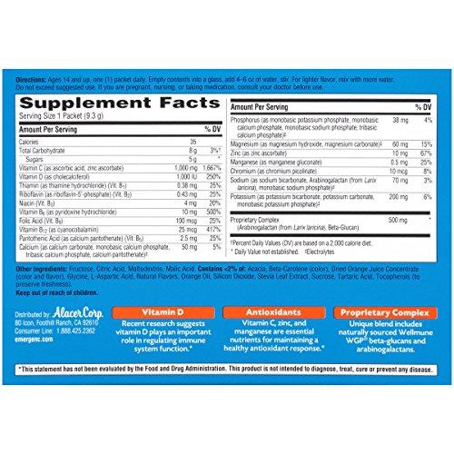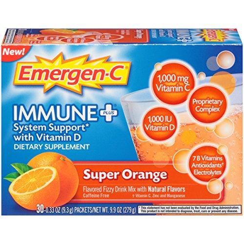 Details: The Emergen-C Immune+ dietary supplement drink mix supports your immune system with key nutrients your body needs such as vitamin D and B vitamins, plus a proprietary complex with beta-glucans and arabinogalactans. It also contains electrolytes - potassium, sodium, calcium, magnesium, phosphorus, and key antioxidants - vitamin C, zinc, and manganese. The product supports your immune system, enhances your energy naturally, and replenishes your body*. Emergen-C Immune+ dietary supplement contains natural, delicious flavors*.