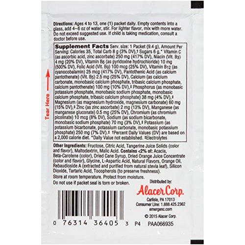 Details: Emergen-C Kidz vitamin supplement drink mix provides the fun and fizzy goodness of the original Emergen-C, specially formulated for kids! Each packet provides the vitamins, antioxidants and electrolytes your kids need to keep feeling good every day. Each packet of Emergen-C Kidz vitamin supplement drink mix is formulated for kids ages 4 - 13.