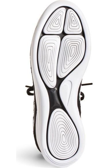 A precise, sock-like fit perfects the high-tech design of a breathable running shoe equipped with Lunarlon cushioning for responsive performance support. The plush contoured midsole is super-flexible, so it moves with you while you train. Laser-cut pods at the outsole add even more cushioning, as well as multisurface traction.