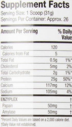 - 25g of protein per scoop, with less than a gram of fat and only 2g of carbs