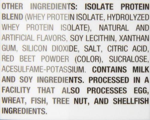 Details: 100% ISO whey. Contains only the most rapidly absorbing whey protein isolate and hydrolysate for an immediate supply of anabolic protein. 25g of protein per scoop, with less than a gram of fat and only 2g of carbs. Powered by ultra-pure, cold-processed microfiltered whey protein isolates. Whey protein isolates are the purest and most bio-available form of whey protein you can feed your body.