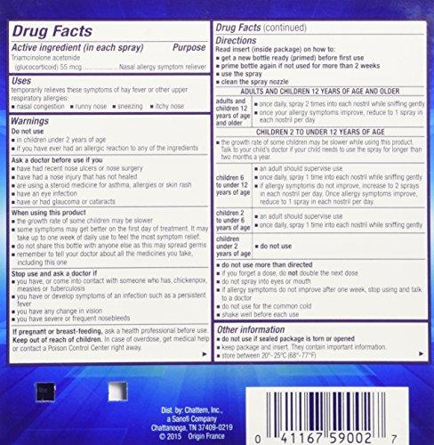 • Triamcinolone Acetonide (glucocortoid) 55 mcg per spray