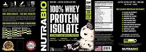 - NutraBio 100% Whey Protein Isolate - 2 pounds Cookies & Cream - NO Soy, NO Whey Concentrate, NO Amino Acid Spiking just 100% Pure WPI