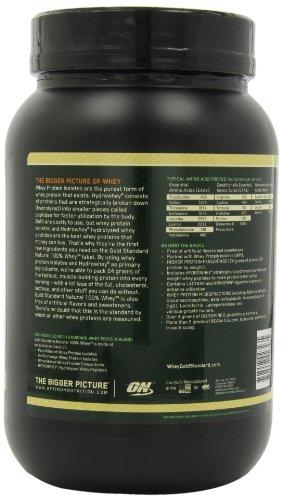 Details: Whey Protein Isolates are 90% pure protein by weight. They are the purest and most expensive form of whey protein that exists. That's why they are the first ingredients you read on the 100% Whey Gold Standard label. By using Whey Protein Isolates as our primary protein source, we're able to pack 24 grams of the purest, muscle-building protein per serving, with a lot less of the fat, cholesterol, lactose, and other stuff that you can do without. There's no question this is the standard by which other whey proteins are measured.