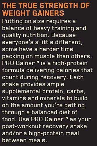 Details: Putting on size requires a balance of heavy training and quality nutrition. Because everyone's a little different, some have a harder time packing on muscle than others. PRO Gainer is a high-protein formula delivering calories that count during recovery. Each shake provides ample supplemental protein, carbs, vitamins and minerals to build on the amount you're getting through a balanced diet of food. Use PRO Gainer as your post-workout recovery shake and/or high-protein meal between meals.
