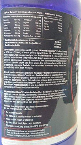 Details: Delicious Ultimate Nutrition Protein Isolate 2 is a combination of two different vegetable proteins, derived from wheat and peas, which have different absorption rates. This extended release blend provides your body with high-quality nutritional support over an extended periods of time. All the Essential Amino Acids With the addition of pea protein isolate, Ultimate Nutrition® Protein Isolate 2 offers a more complete and balanced amino acid profile, including all the essential amino acids and plenty of naturally-occurring BCAAs. Suitable for Vegans. No Animal Anything! Ultimate Nutrition Protein Isolate 2 provides the benefits of dairy proteins, but contains no lactose, no cholesterol, and no saturated fat. And to help digest gluten, Protein Isolate 2 includes three digestive enzymes: protease, bromelain and papain, all of which are derived from non-animal sources. Wheat protein isolate is high in glutamic acid, an anti-catabolic nutrient that reduces muscle soreness after exercise.