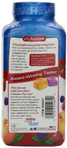Details: Enjoy your fiber with these great tasting gummies. Contains 5 grams of fiber and also sugar free. It contains more fiber than other leading brands.